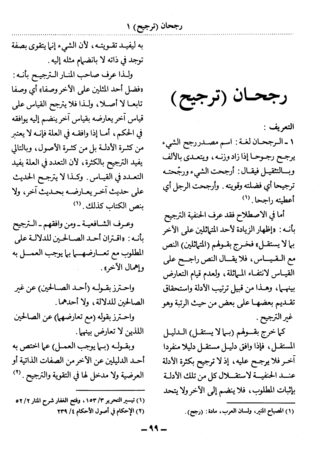 (1) المصباح المنير، ولسان العرب، مادة (رجح) .