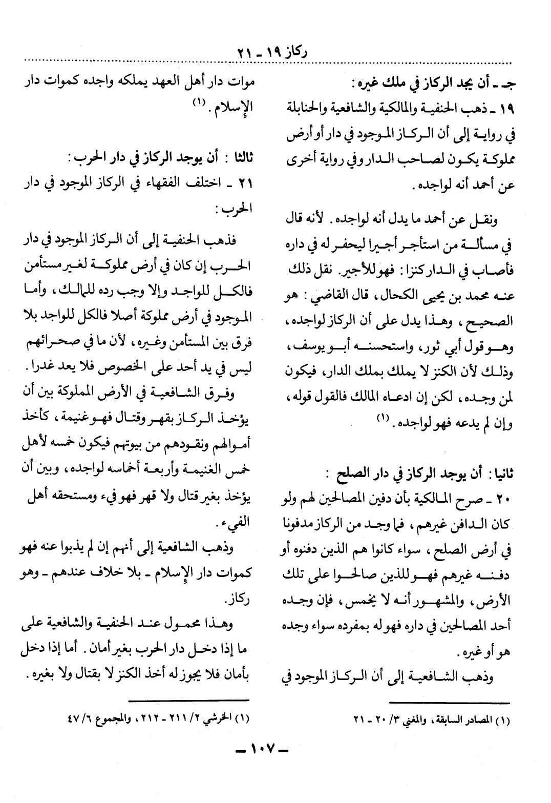 21 - اخْتَلَفَ الْفُقَهَاءُ فِي الرِّكَازِ الْمَوْجُودِ فِي دَارِ الْحَرْبِ: