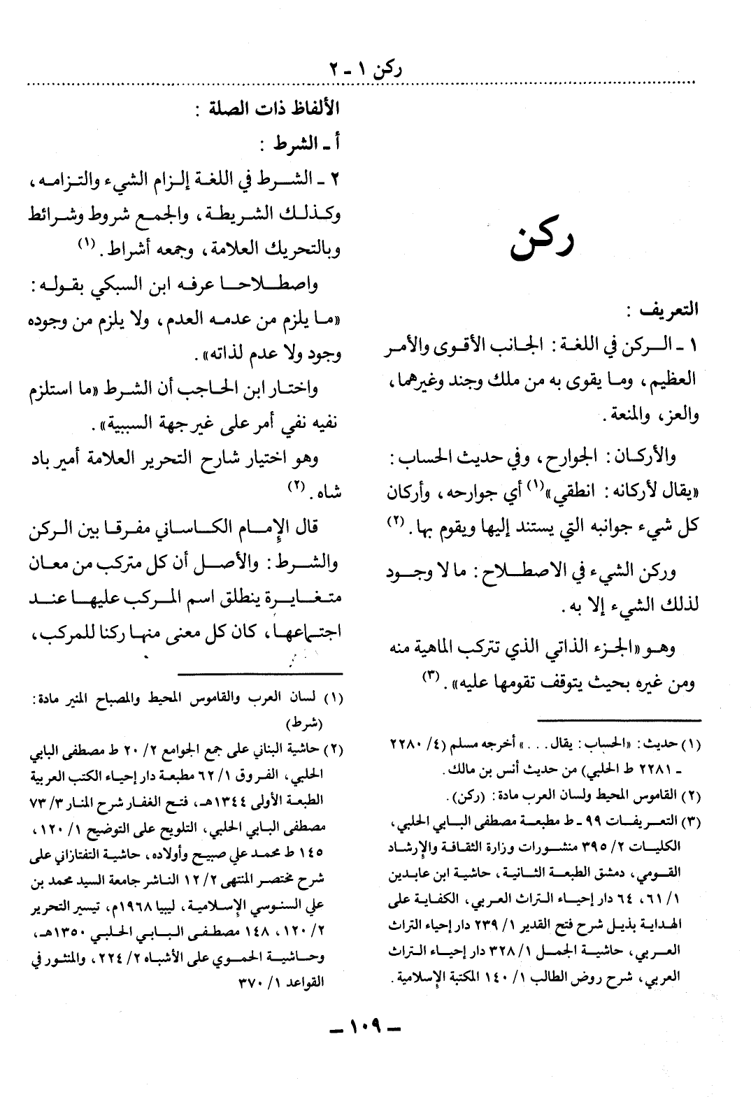 (2) القاموس المحيط ولسان العرب مادة: (ركن) .