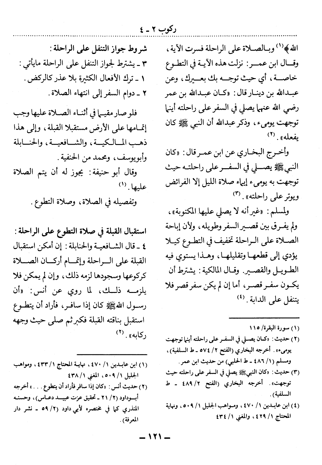 3 - يُشْتَرَطُ لِجَوَازِ التَّنَفُّل عَلَى الرَّاحِلَةِ مَا يَأْتِي: