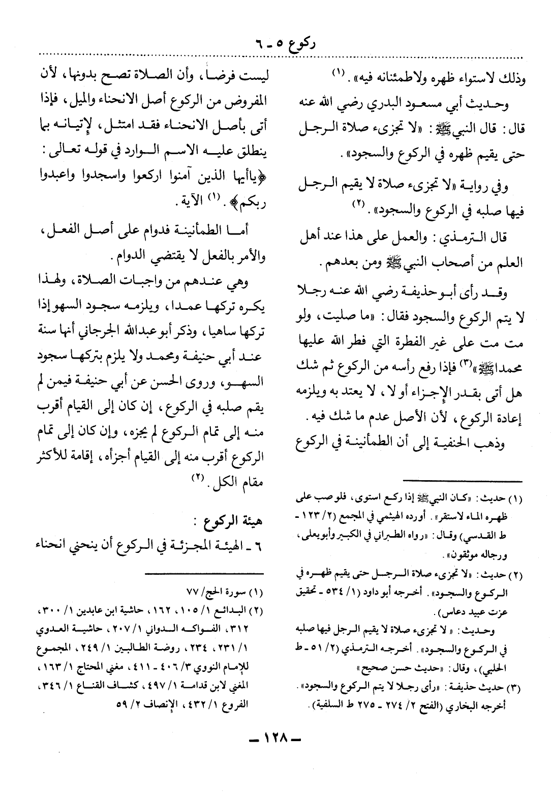 6 - الْهَيْئَةُ الْمُجْزِئَةُ فِي الرُّكُوعِ أَنْ يَنْحَنِيَ انْحِنَاءً