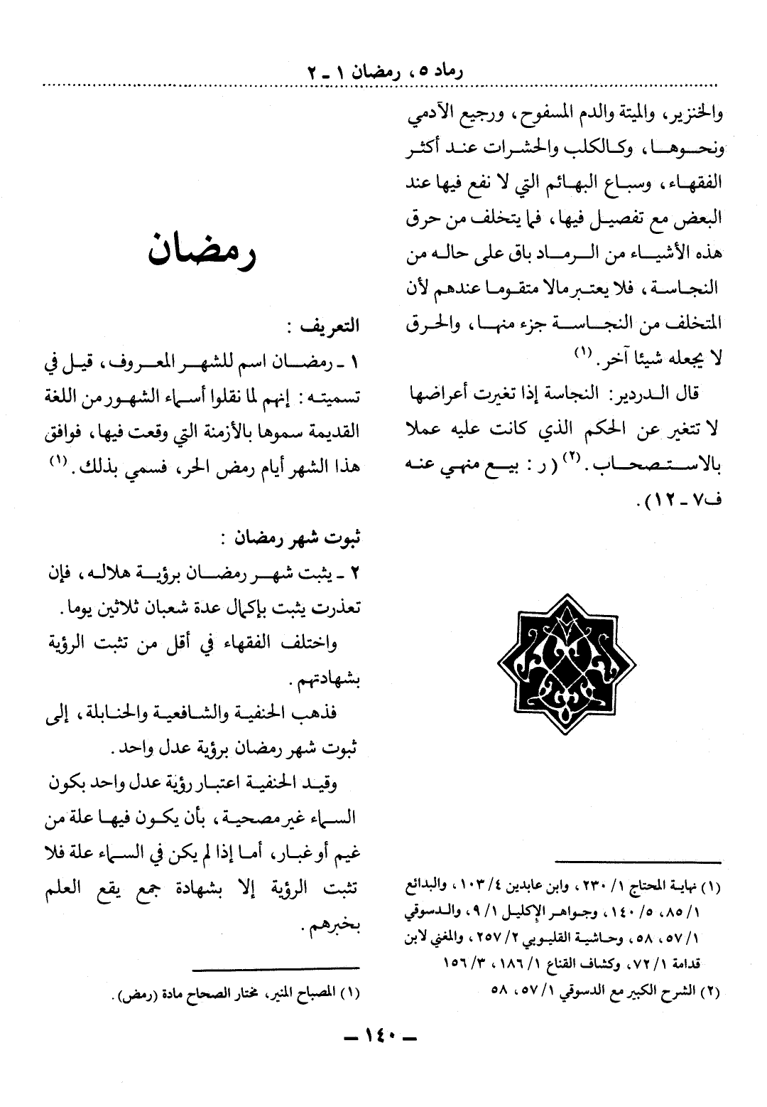 (1) المصباح المنير، مختار الصحاح مادة (رمض) .