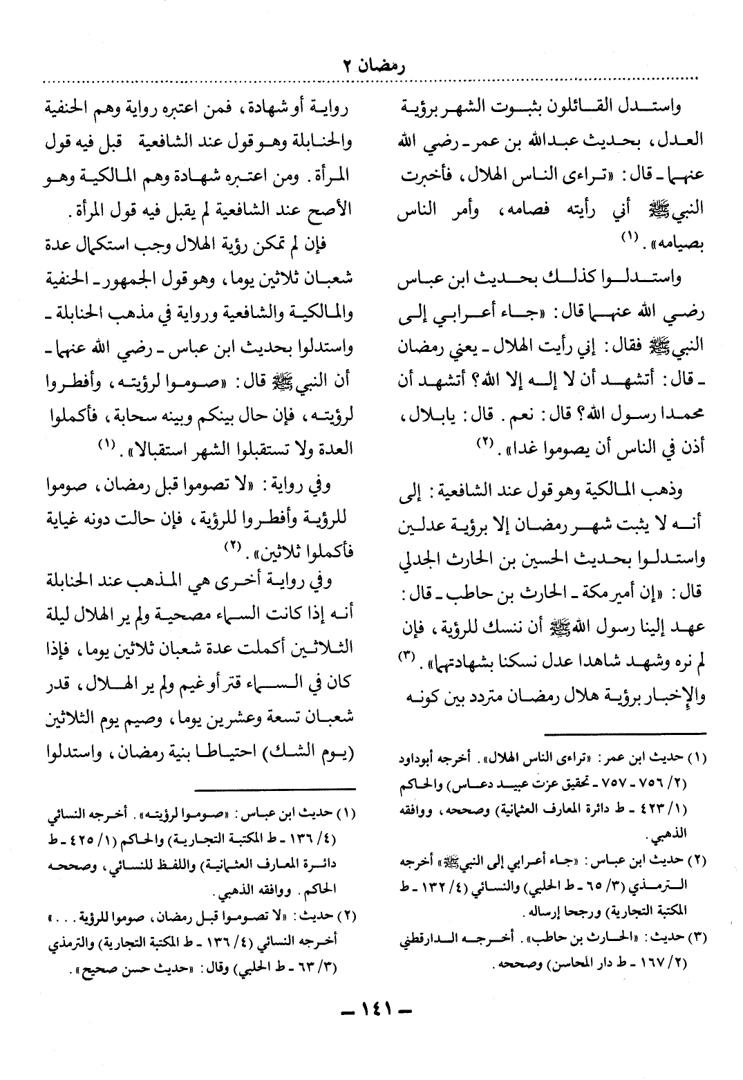 (1) حديث ابن عمر: " تراءى الناس الهلال ". أخرجه أبو داود (2 / 756 - 757 - تحقيق عزت عبيد دعاس) والحاكم (1 / 423 - ط دائرة المعارف العثمانية) وصححه، ووافقه الذهبي. .