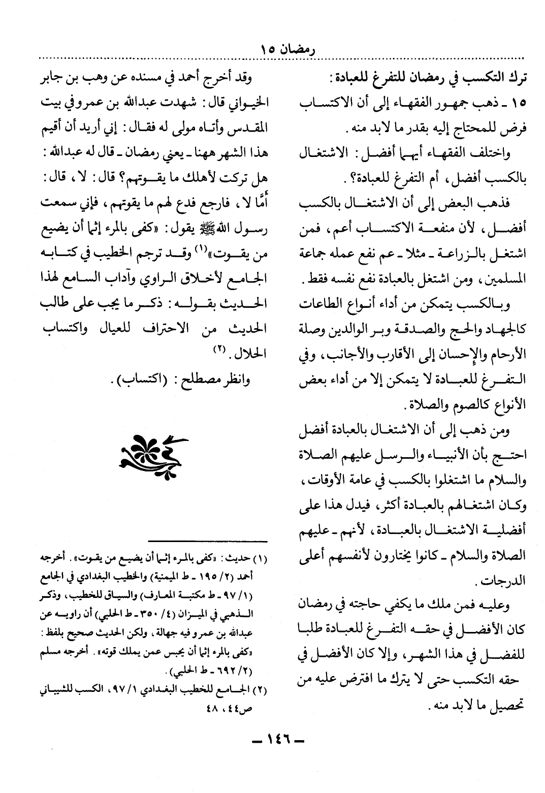 (2) الجامع للخطيب البغدادي 1 / 97، الكسب للشيباني ص44، 48.