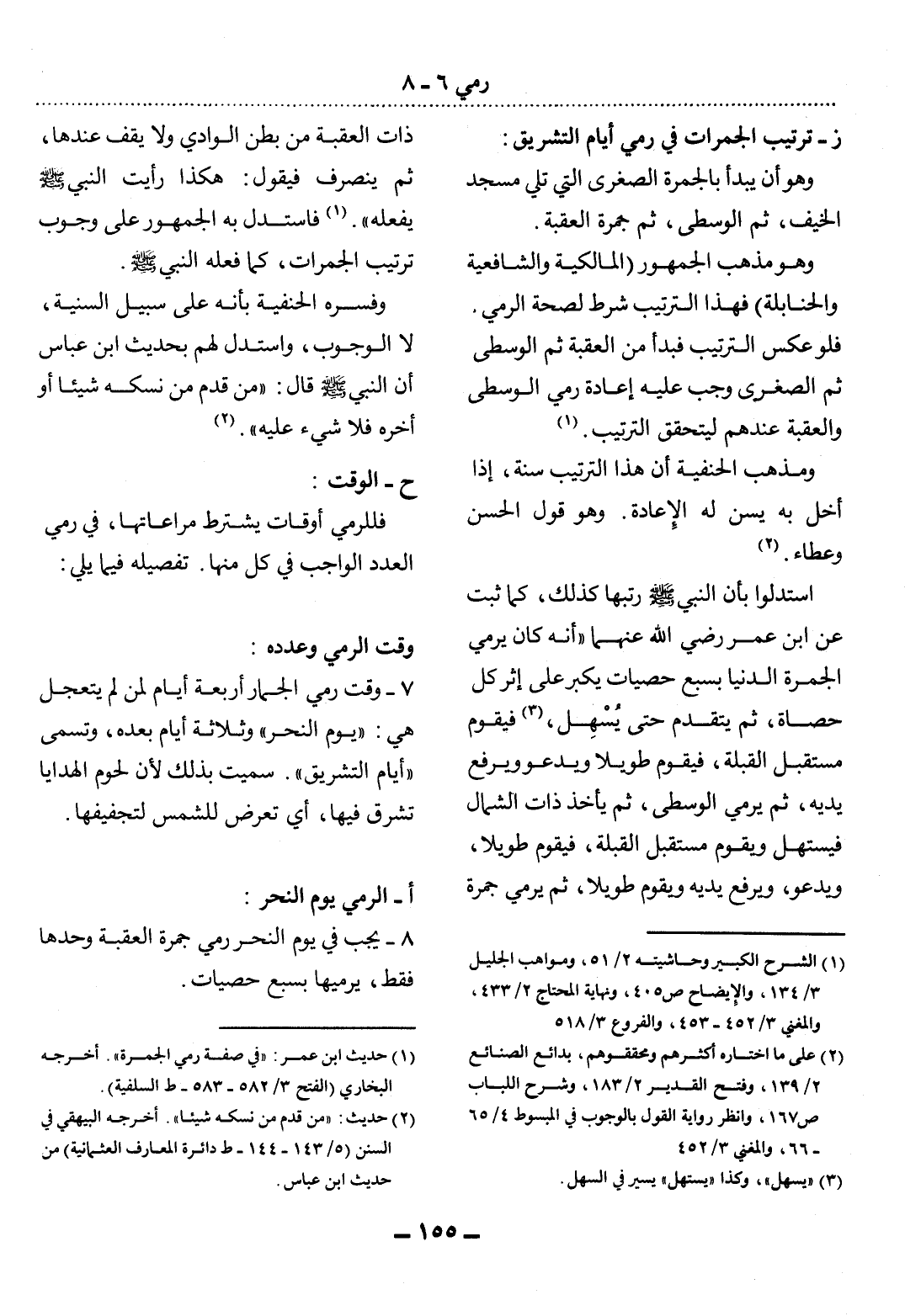 (3) . فَاسْتَدَل بِهِ الْجُمْهُورُ عَلَى وُجُوبِ تَرْتِيبِ الْجَمَرَاتِ، كَمَا فَعَلَهُ النَّبِيُّ صَلَّى اللَّهُ عَلَيْهِ وَسَلَّمَ.