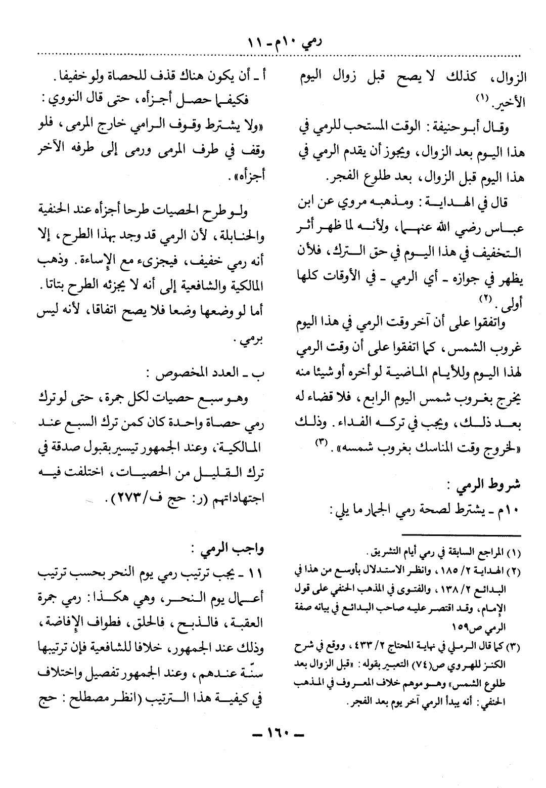 10 م - يُشْتَرَطُ لِصِحَّةِ رَمْيِ الْجِمَارِ مَا يَلِي: