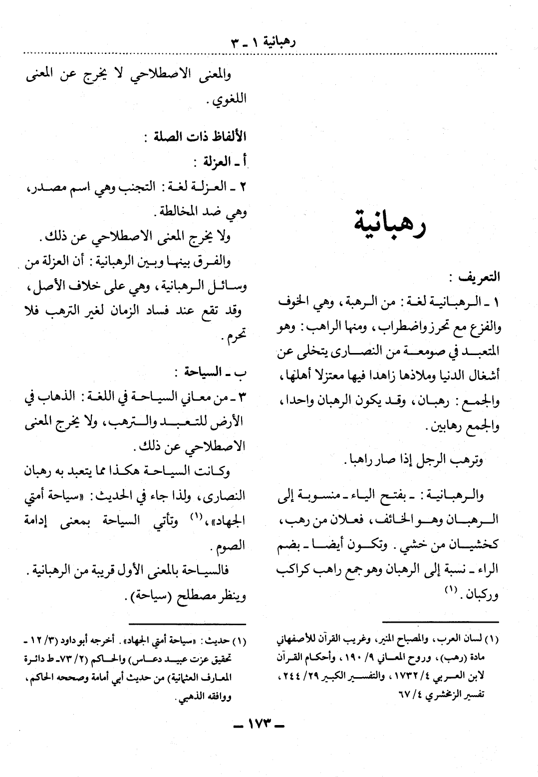 (1) لسان العرب، والمصباح المنير، وغريب القرآن للأصفهاني مادة (رهب) ، وروح المعاني 9 / 190، وأحكام القرآن لابن العربي 4 / 1732، والتفسير الكبير 29 / 244، تفسير الزمخشري 4 / 67