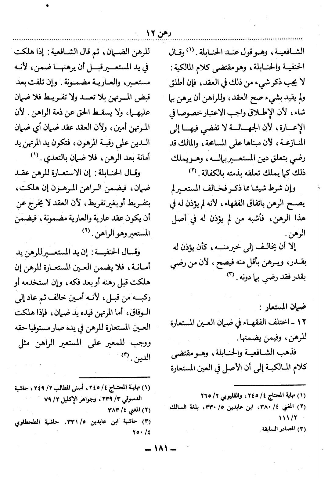 12 - اخْتَلَفَ الْفُقَهَاءُ فِي ضَمَانِ الْعَيْنِ الْمُسْتَعَارَةِ لِلرَّهْنِ، وَفِيمَنْ يَضْمَنُهَا.