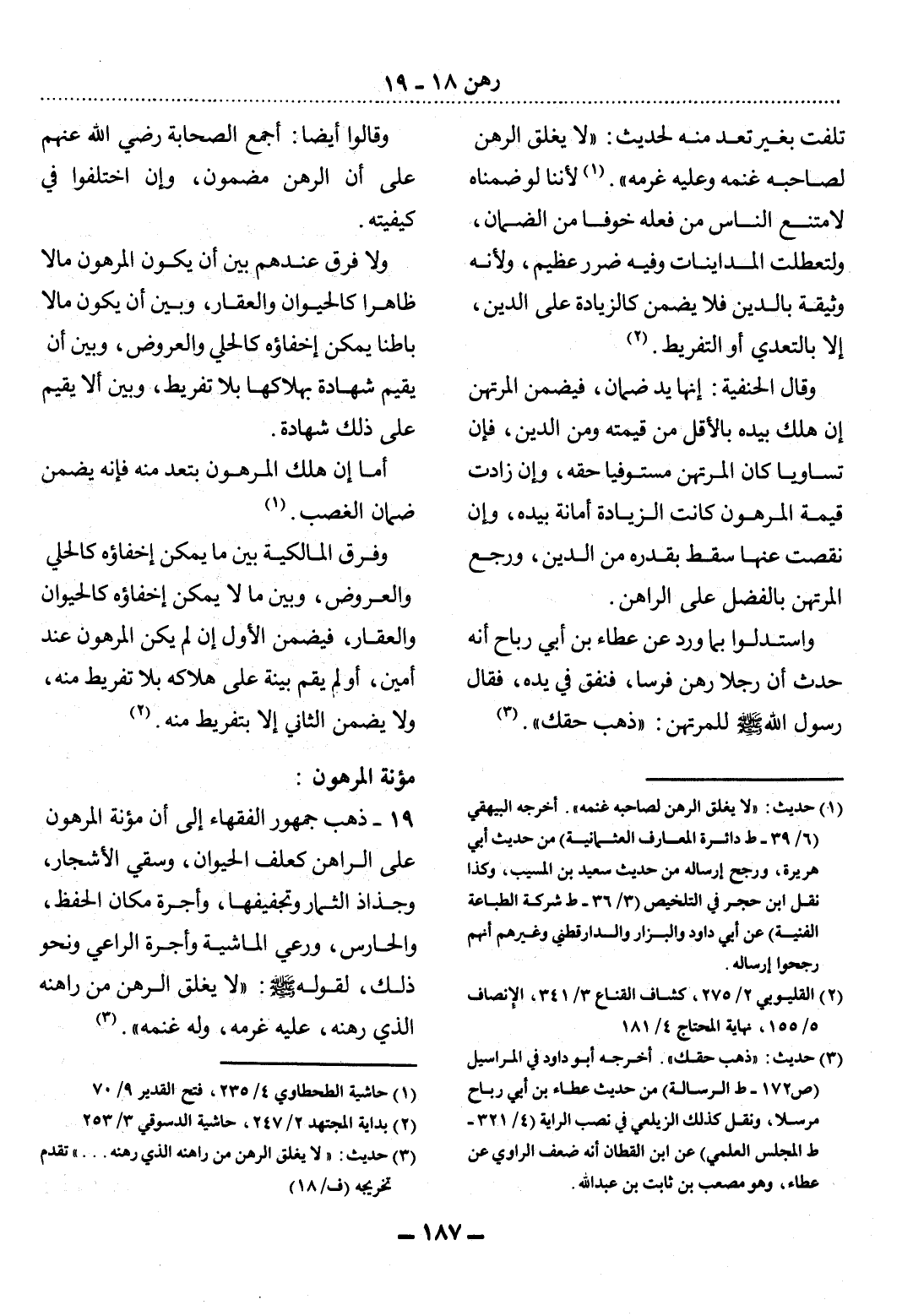 (2) القليوبي 2 / 275، كشاف القناع 3 / 341، الإنصاف 5 / 155، نهاية المحتاج 4 / 181