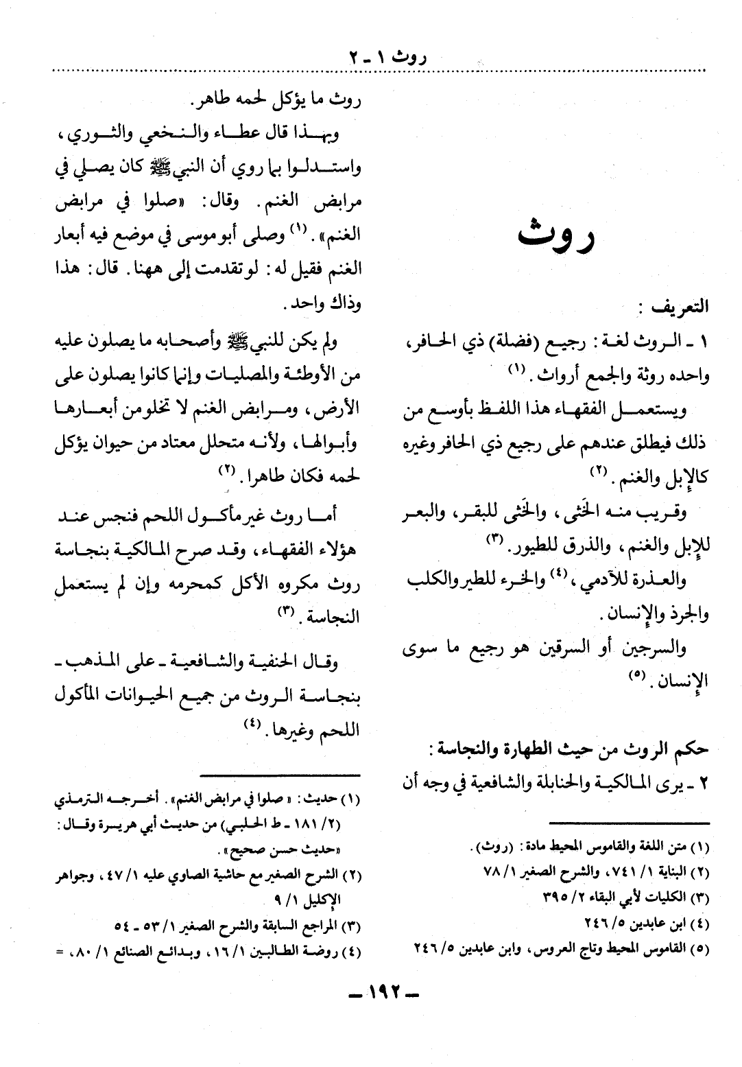 1 - الرَّوْثُ لُغَةً: رَجِيعُ (فَضْلَةُ) ذِي الْحَافِرِ، وَاحِدُهُ رَوْثَةٌ وَالْجَمْعُ أَرْوَاثٌ (1) .