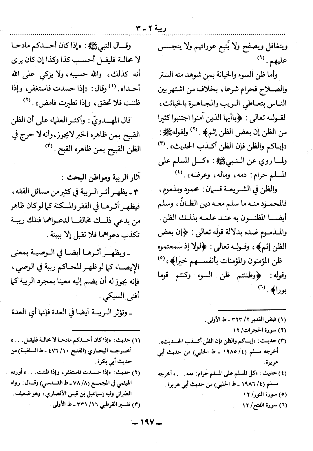 آثَارُ الرِّيبَةِ وَمَوَاطِنُ الْبَحْثِ: