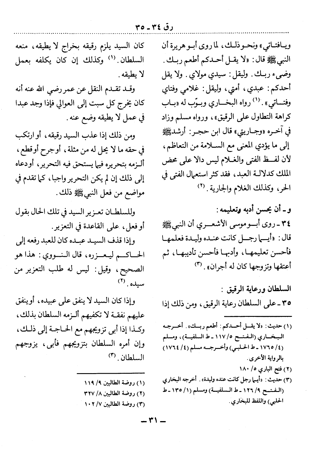 35 - عَلَى السُّلْطَانِ رِعَايَةُ الرَّقِيقِ، وَمِنْ ذَلِكَ إِذَا