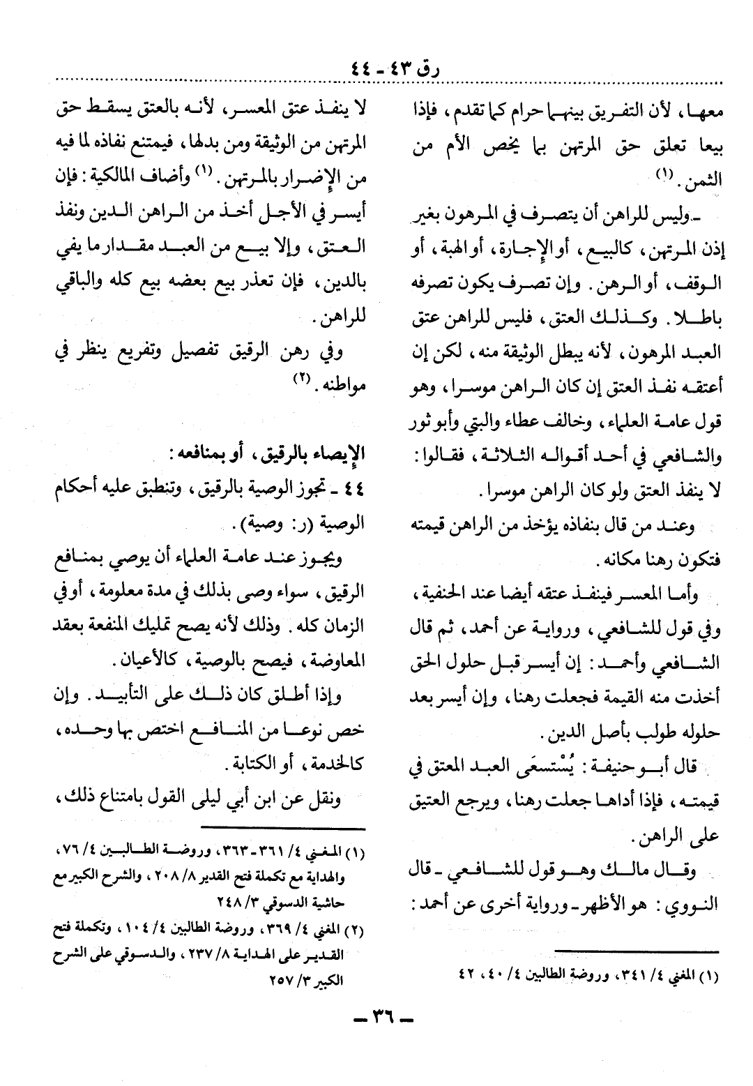 44 - تَجُوزُ الْوَصِيَّةُ بِالرَّقِيقِ، وَتَنْطَبِقُ عَلَيْهِ أَحْكَامُ الْوَصِيَّةِ (ر: وَصِيَّة) .