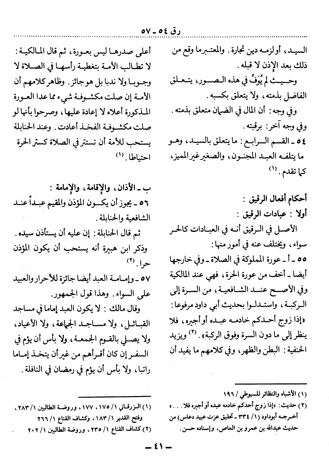 57 - وَإِمَامَةُ الْعَبْدِ أَيْضًا جَائِزَةٌ لِلأَْحْرَارِ وَالْعَبِيدِ عَلَى السَّوَاءِ. وَهَذَا قَوْل الْجُمْهُورِ.