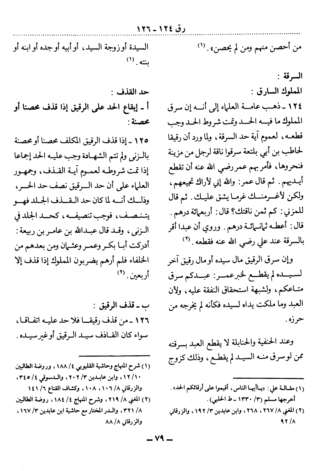 126 - مَنْ قَذَفَ رَقِيقًا فَلاَ حَدَّ عَلَيْهِ اتِّفَاقًا، سَوَاءٌ كَانَ الْقَاذِفُ سَيِّدَ الرَّقِيقِ أَوْ غَيْرَ سَيِّدِهِ.