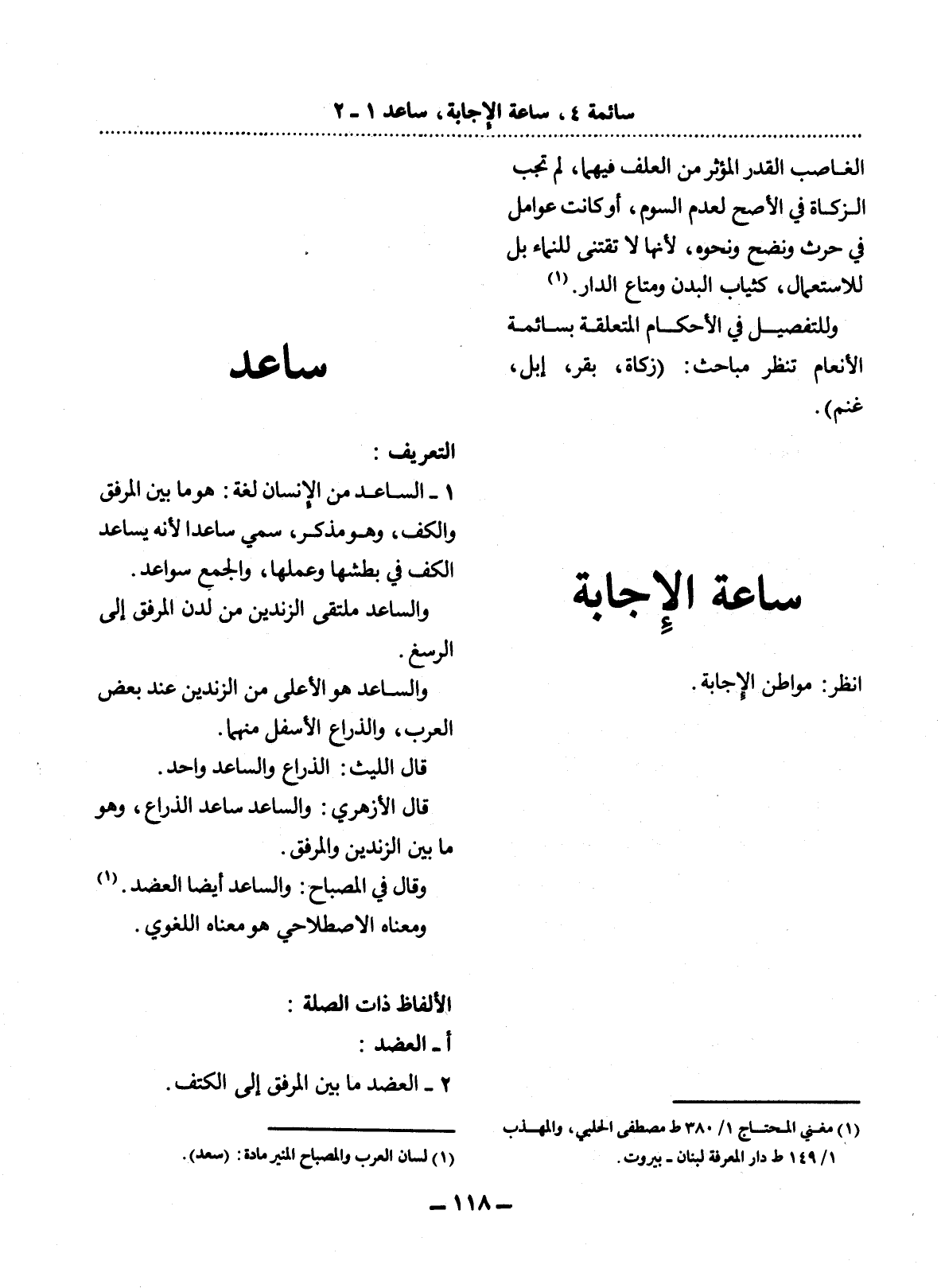 وَالسَّاعِدُ مُلْتَقَى الزَّنْدَيْنِ مِنْ لَدُنِ الْمِرْفَقِ إِلَى الرُّسْغِ.