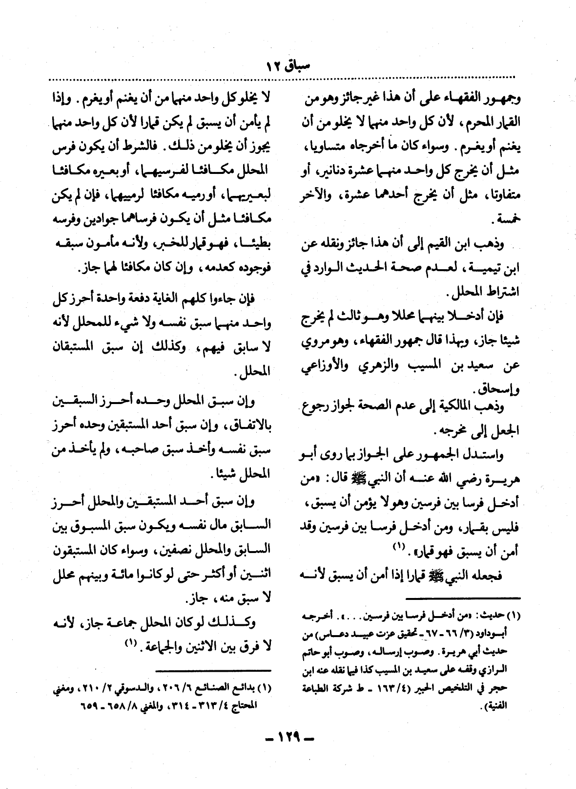 (1) حديث: " من أدخل فرسا بين فرسين. . . ". أخرجه أبو داود (3 / 66 - 67 - تحقيق عزت عبيد دعاس) من حديث أبي هريرة. وصوب إرساله، وصوب أبو حاتم الرازي وقفه على سعيد بن المسيب كذا فيما نقله عنه ابن حجر في التلخيص الحبير (4 / 163 - ط شركة الطباعة الفنية) .