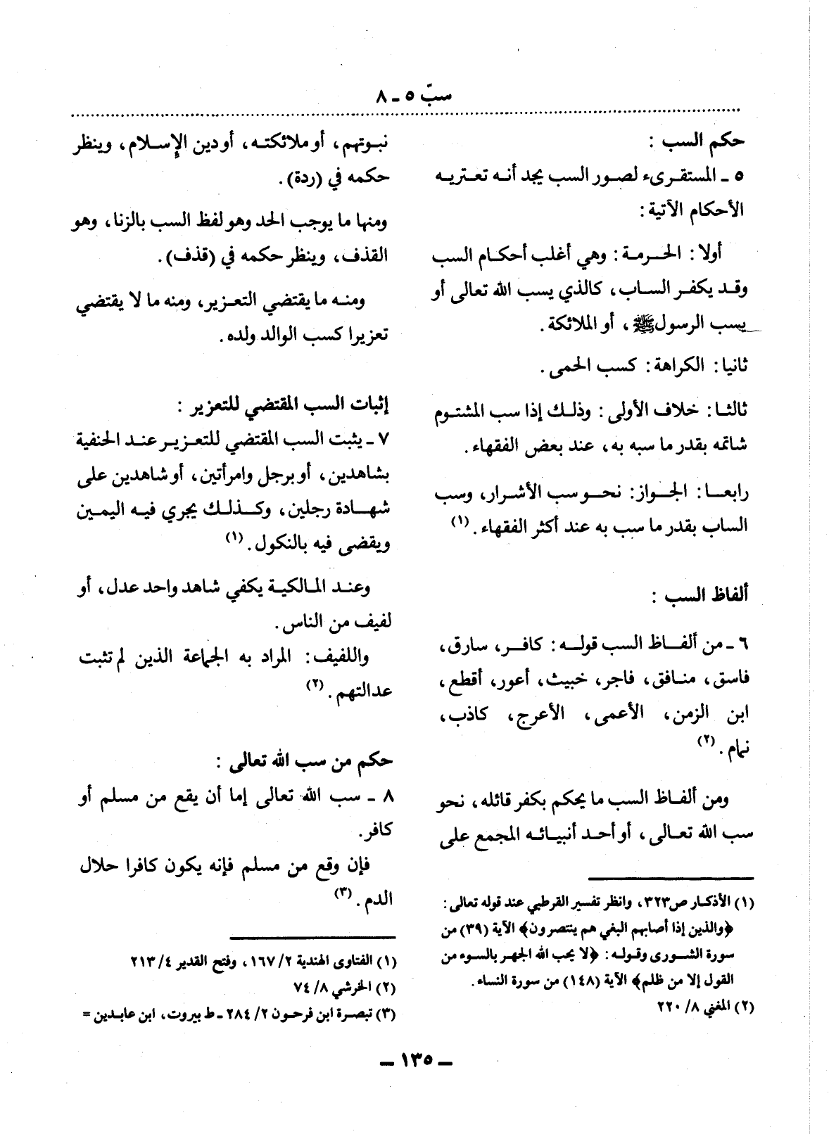 5 - الْمُسْتَقْرِئُ لِصُوَرِ السَّبِّ يَجِدُ أَنَّهُ تَعْتَرِيهِ الأَْحْكَامُ الآْتِيَةُ: