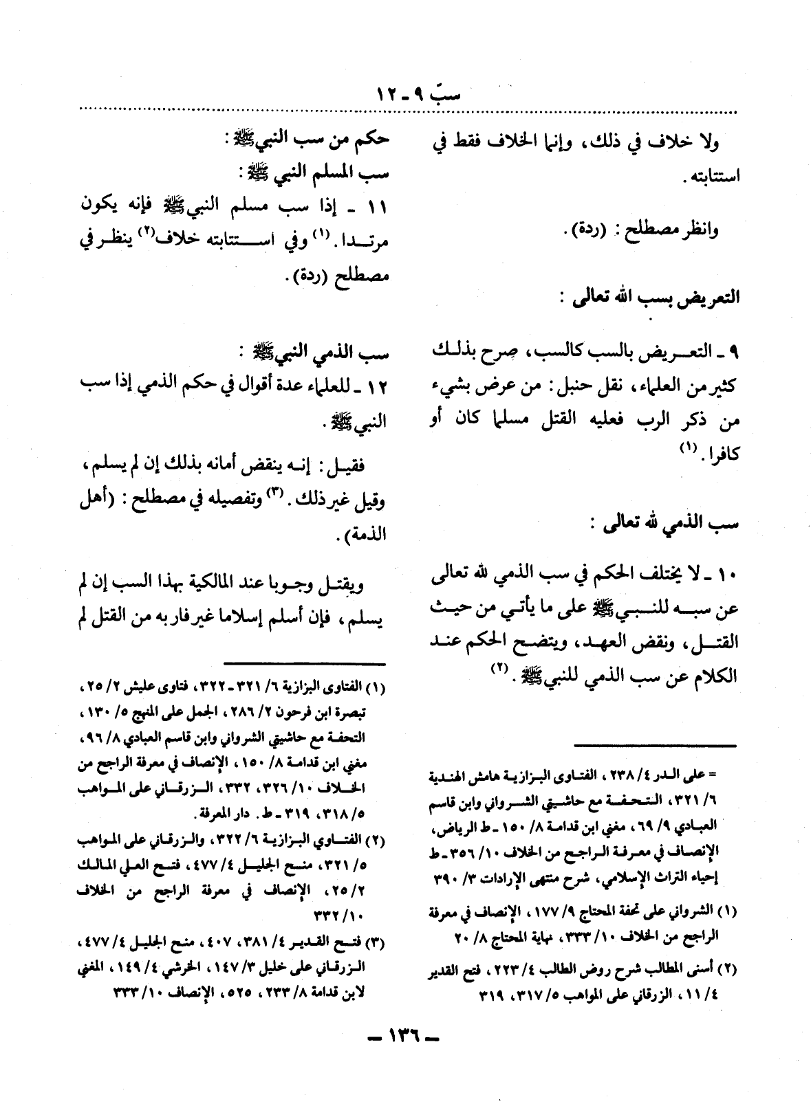 11 - إِذَا سَبَّ مُسْلِمٌ النَّبِيَّ صَلَّى اللَّهُ عَلَيْهِ وَسَلَّمَ فَإِنَّهُ يَكُونُ مُرْتَدًّا. (1) وَفِي اسْتِتَابَتِهِ خِلاَفٌ (2) يُنْظَرُ فِي مُصْطَلَحِ (رِدَّةٍ) .
