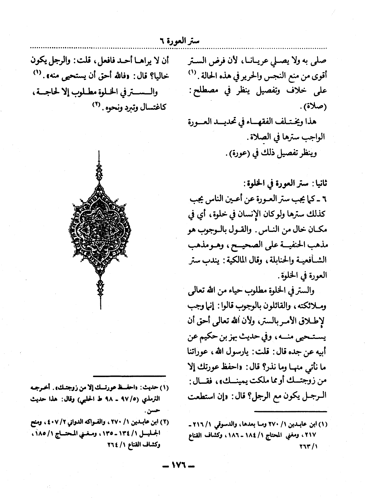 (1) حديث: " احفظ عورتك إلا من زوجتك ". أخرجه الترمذي (5 / 97 - 98 ط الحلبي) وقال: هذا حديث حسن.