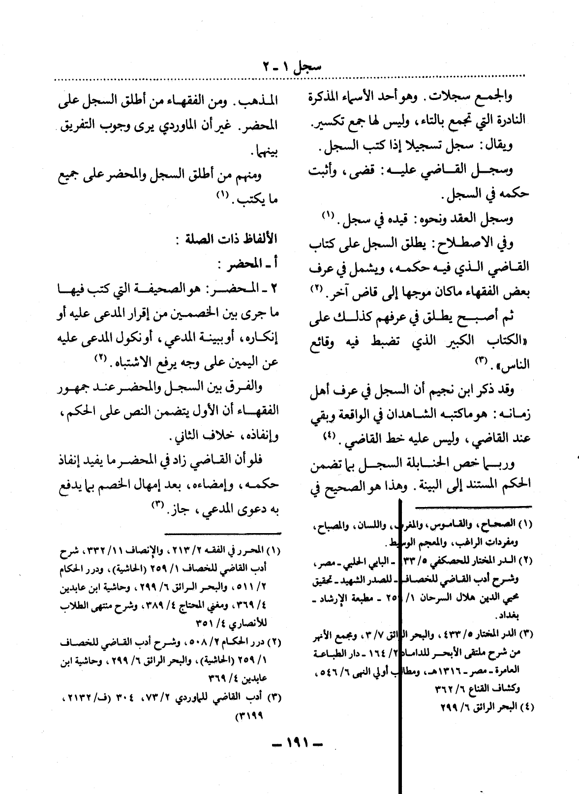 وَمِنْهُمْ مَنْ أَطْلَقَ السِّجِل وَالْمَحْضَرَ عَلَى جَمِيعِ مَا يُكْتَبُ (1) .