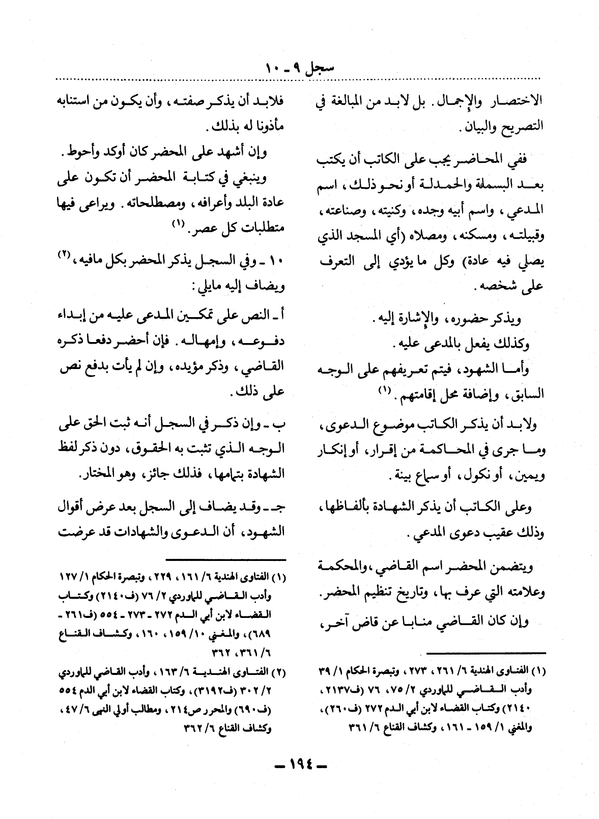 10 - وَفِي السِّجِل يَذْكُرُ الْمَحْضَرَ بِكُل مَا فِيهِ (2) ، وَيُضَافُ إِلَيْهِ مَا يَلِي: