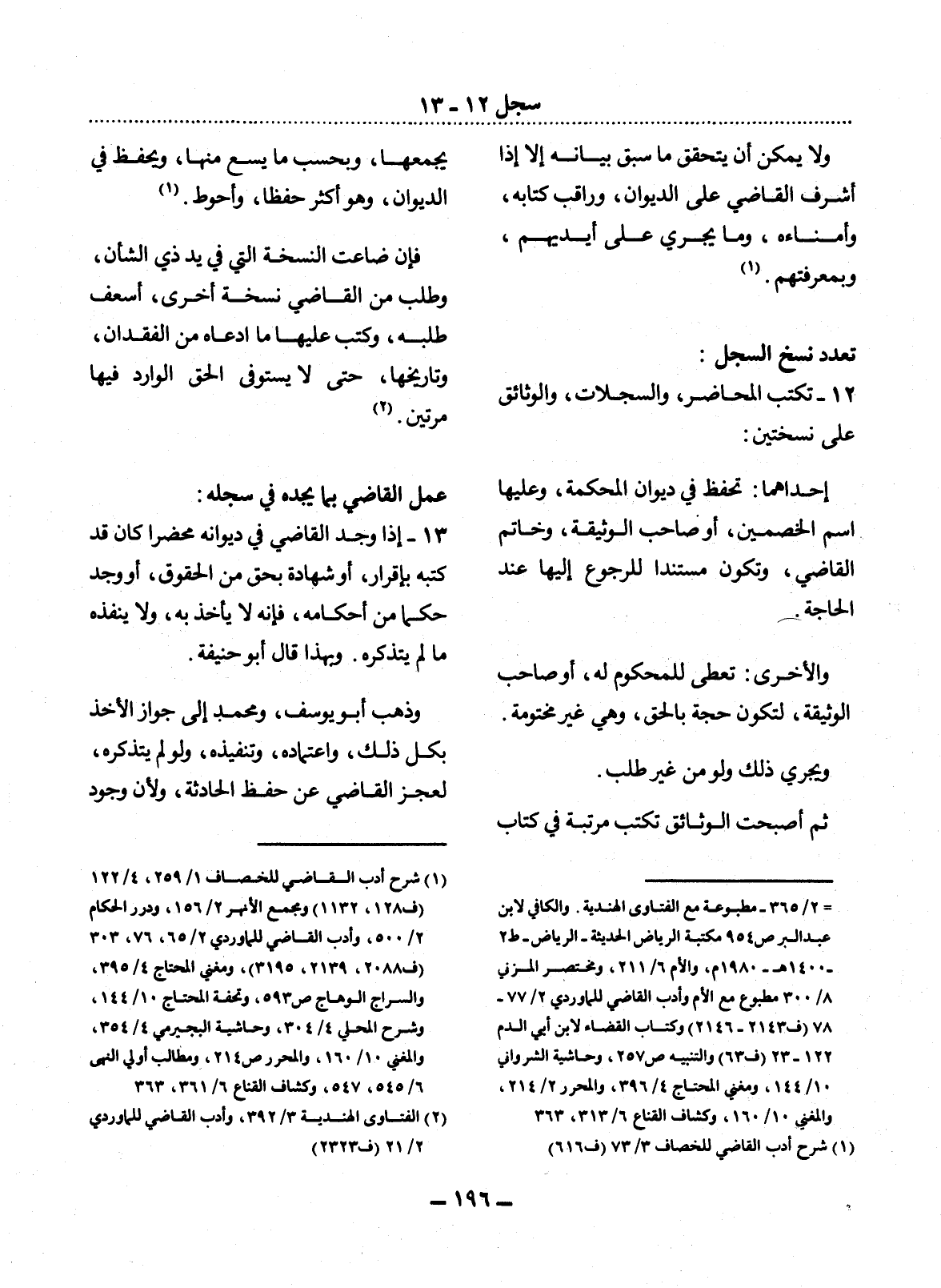 12 - تُكْتَبُ الْمَحَاضِرُ، وَالسِّجِلاَّتُ، وَالْوَثَائِقُ عَلَى نُسْخَتَيْنِ: