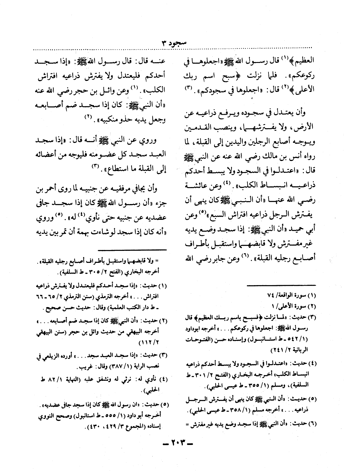 (1) حديث: " إذا سجد أحدكم فليعتدل ولا يفترش ذراعيه افتراش. . . " أخرجه الترمذي (سنن الترمذي 2 / 65 - 66 - ط دار الكتب العلمية) وقال: حديث حسن صحيح.