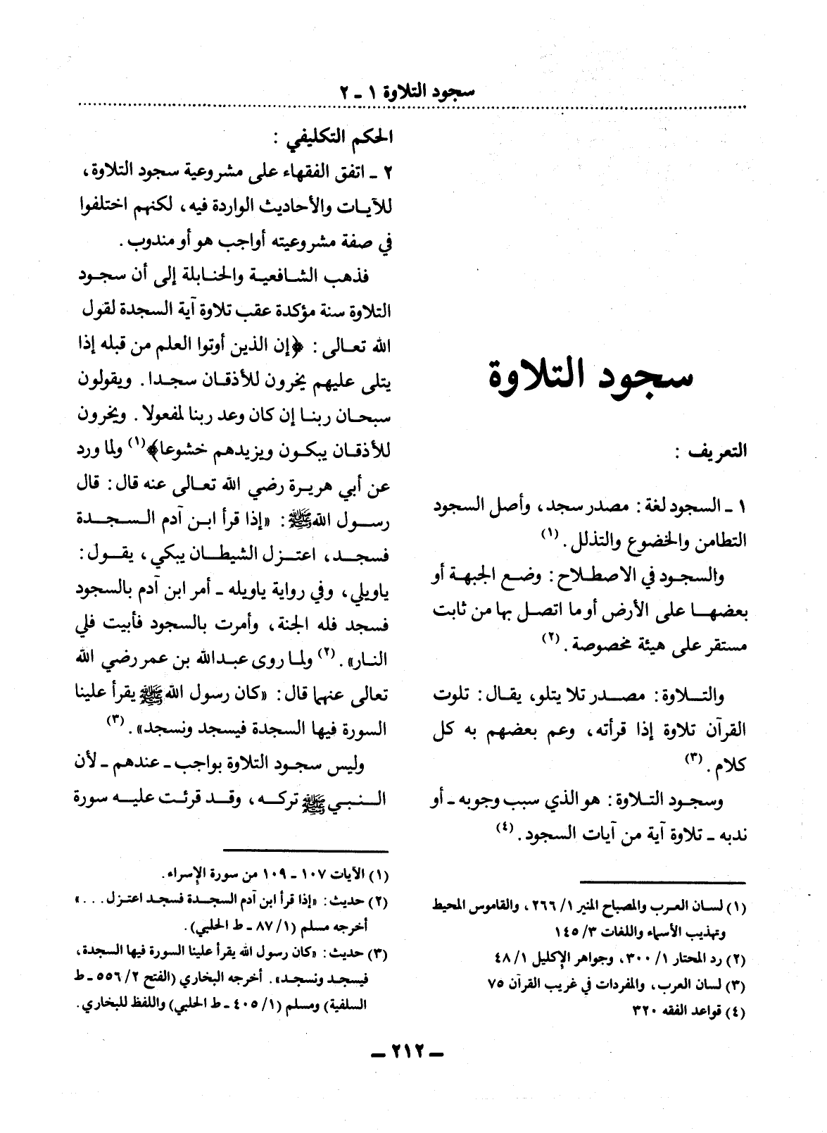 1 - السُّجُودُ لُغَةً: مَصْدَرُ سَجَدَ، وَأَصْل السُّجُودِ التَّطَامُنُ وَالْخُضُوعُ وَالتَّذَلُّل.
