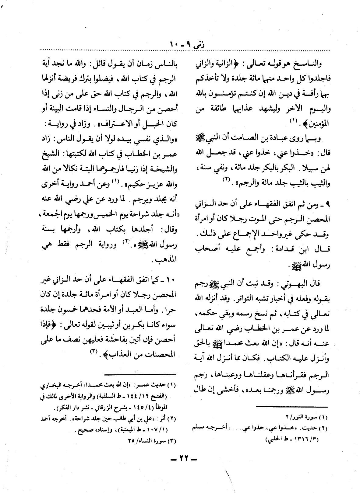 (1) حديث عمر: " إن الله بعث محمدا " أخرجه البخاري (الفتح 12 / 144 - ط السلفية) والرواية الأخرى لمالك في الموطأ (4 / 145 - بشرح الزرقاني - نشر دار الفكر) .