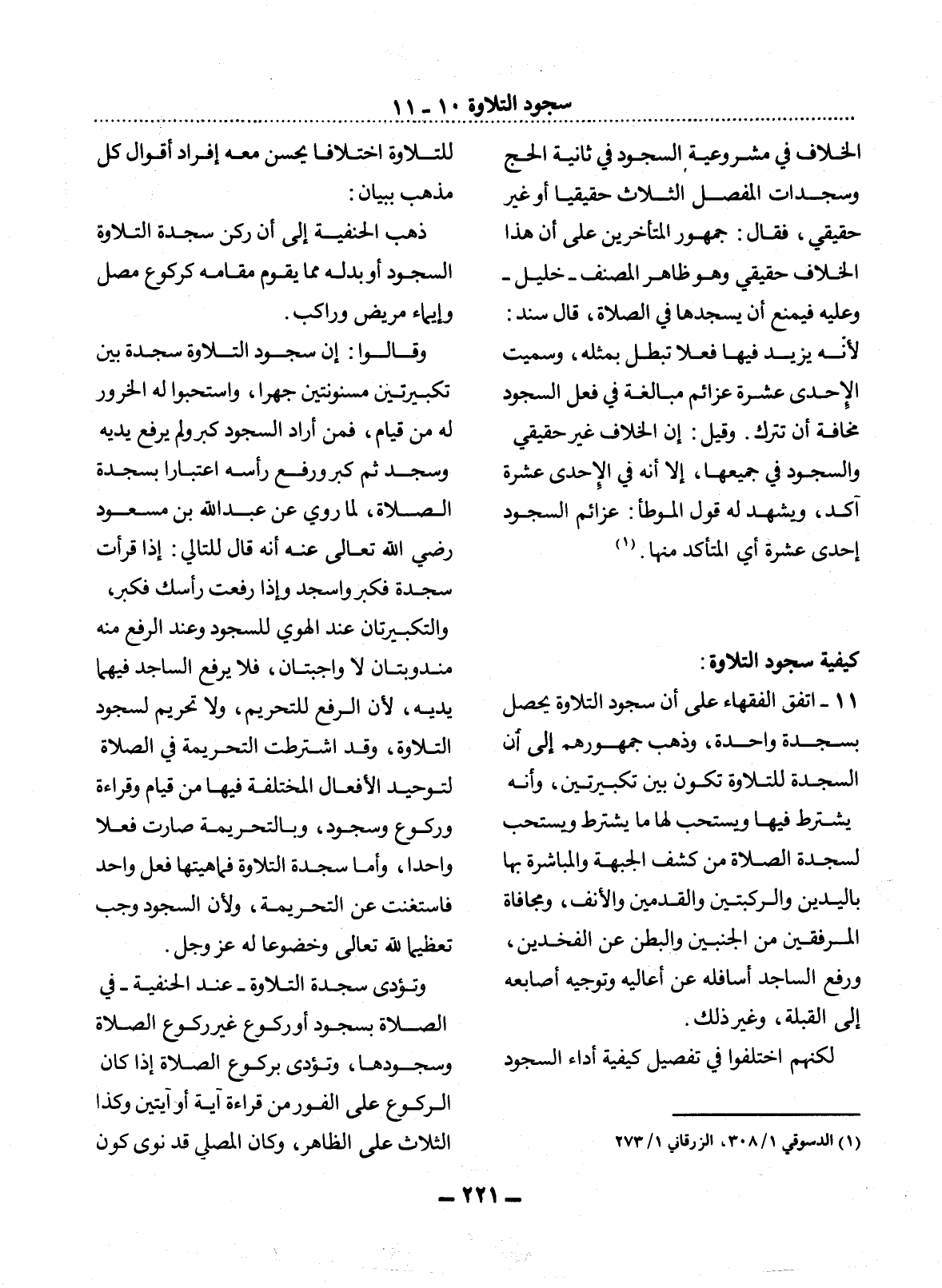 الْخِلاَفِ فِي مَشْرُوعِيَّةِ السُّجُودِ فِي ثَانِيَةِ الْحَجِّ وَسَجَدَاتِ الْمُفَصَّل الثَّلاَثِ حَقِيقِيًّا أَوْ غَيْرَ حَقِيقِيٍّ، فَقَال: جُمْهُورُ الْمُتَأَخِّرِينَ عَلَى أَنَّ هَذَا الْخِلاَفَ حَقِيقِيٌّ وَهُوَ ظَاهِرُ الْمُصَنِّفِ خَلِيلٍ - وَعَلَيْهِ فَيُمْنَعُ أَنْ يَسْجُدَهَا فِي الصَّلاَةِ، قَال سَنَدٌ: لأَِنَّهُ يَزِيدُ فِيهَا فِعْلاً تَبْطُل بِمِثْلِهِ، وَسُمِّيَتِ الإِْحْدَى عَشْرَةَ عَزَائِمَ مُبَالَغَةً فِي فِعْل السُّجُودِ مَخَافَةَ أَنْ تُتْرَكَ. وَقِيل: إِنَّ الْخِلاَفَ غَيْرُ حَقِيقِيٍّ وَالسُّجُودُ فِي جَمِيعِهَا، إِلاَّ أَنَّهُ فِي الإِْحْدَى عَشْرَةَ آكَدُ، وَيَشْهَدُ لَهُ قَوْل الْمُوَطَّأِ: عَزَائِمُ السُّجُودِ إِحْدَى عَشْرَةَ أَيِ الْمُتَأَكِّدُ مِنْهَا. (1)