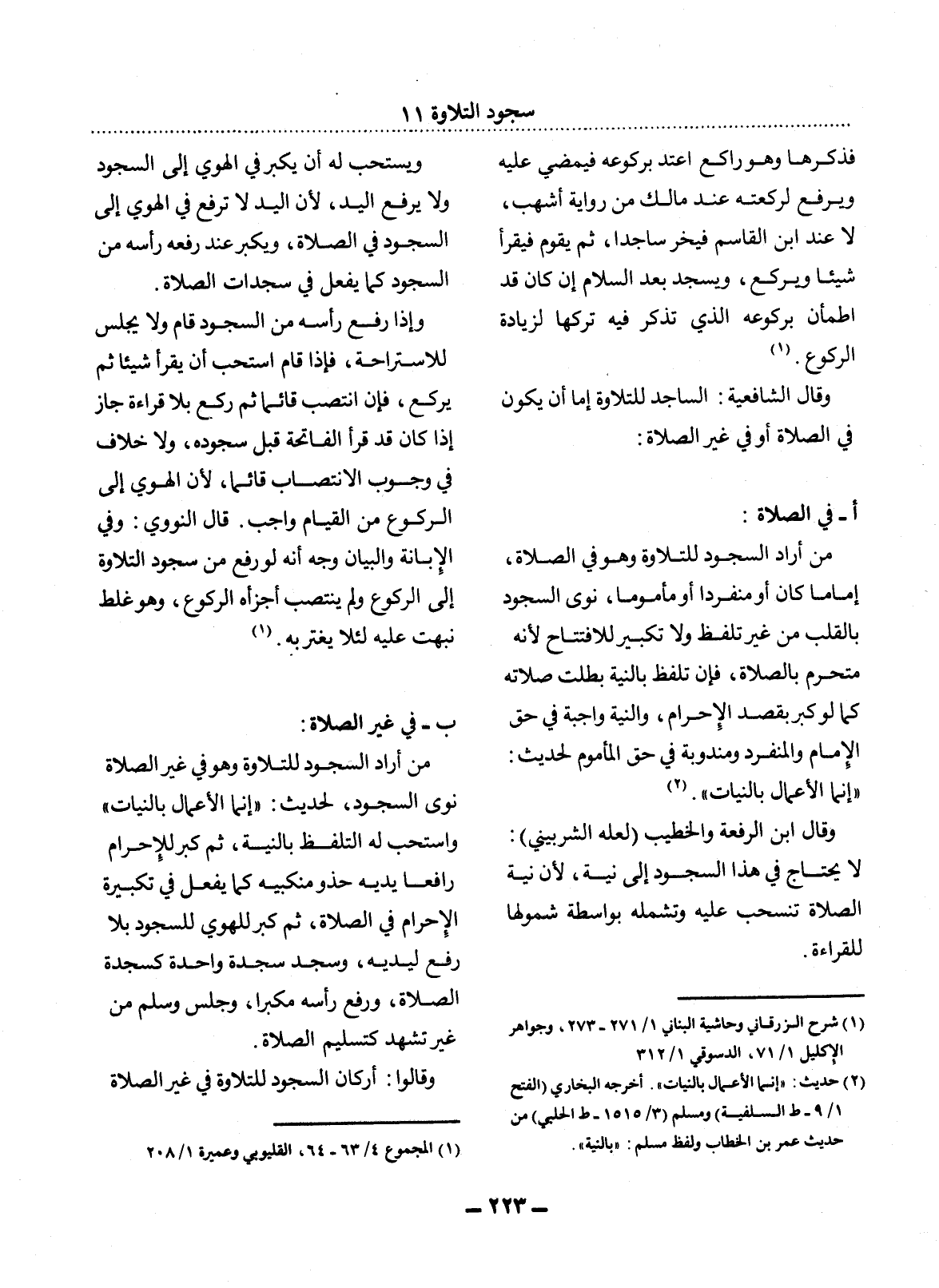 (1) شرح الزرقاني وحاشية البناني 1 / 271 - 273، وجواهر الإكليل 1 / 71، الدسوقي 1 / 312.