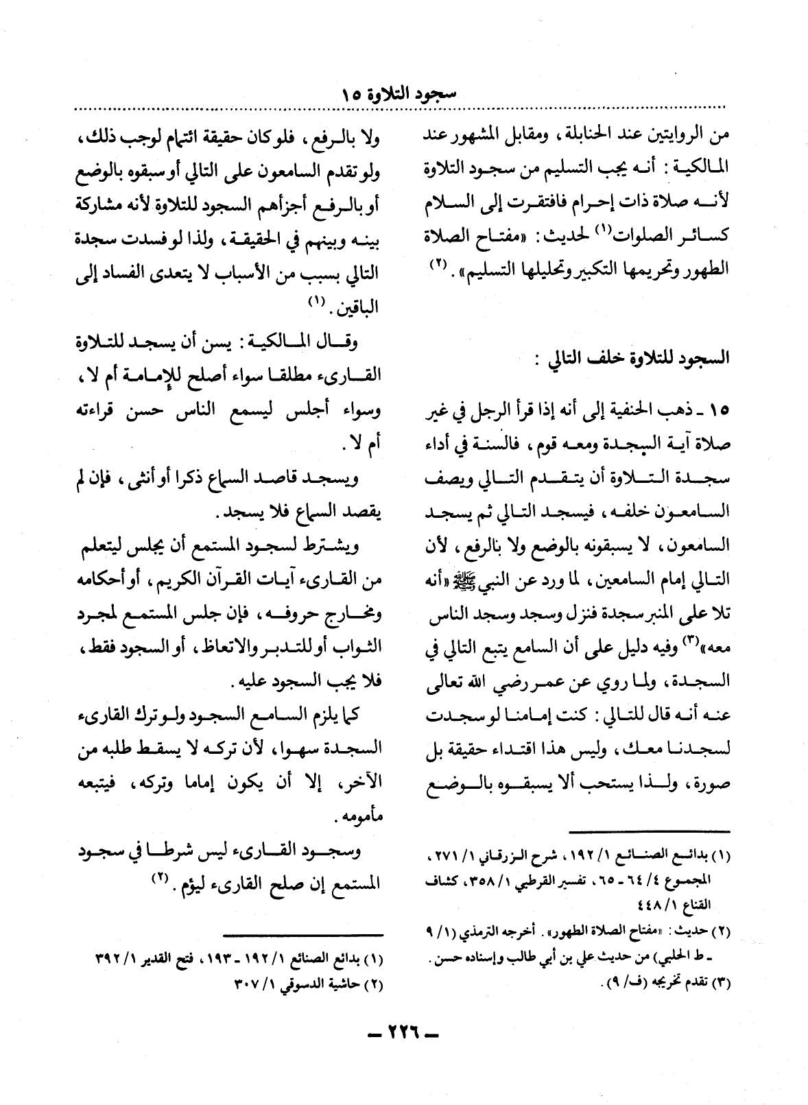 (1) بدائع الصنائع 1 / 192 - 193، فتح القدير 1 / 392.