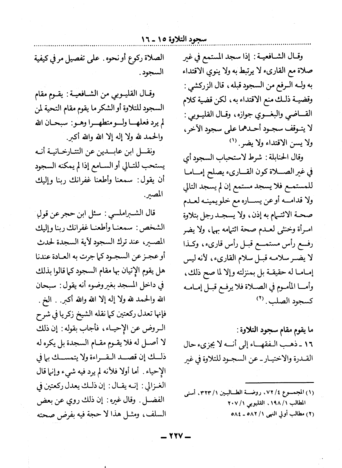(1) المجموع 4 / 72، روضة الطالبين 1 / 323، أسنى المطالب 1 / 198، القليوبي 1 / 207.