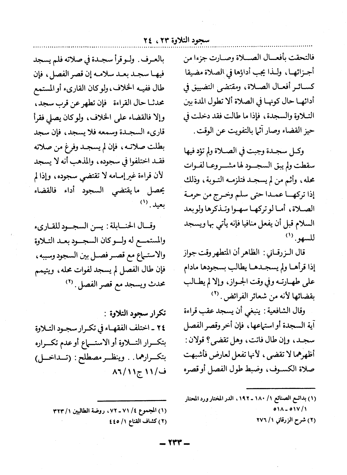 24 - اخْتَلَفَ الْفُقَهَاءُ فِي تَكْرَارِ سُجُودِ التِّلاَوَةِ بِتَكْرَارِ التِّلاَوَةِ أَوِ الاِسْتِمَاعِ أَوْ عَدَمِ تَكْرَارِهِ بِتَكْرَارِهِمَا. . وَيُنْظَرُ مُصْطَلَحُ: (تَدَاخُلٍ) ف 11 ج 11 / 86
