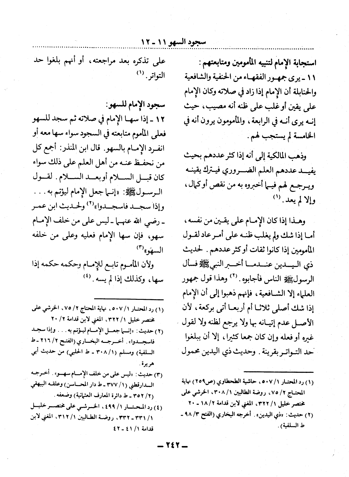 (1) رد المحتار 1 / 507، حاشية الطحطاوي (ص 259) نهاية المحتاج 2 / 75، روضة الطالبين 1 / 308، الخرشي على مختصر خليل 1 / 322، المغني لابن قدامة 2 / 18 - 20.