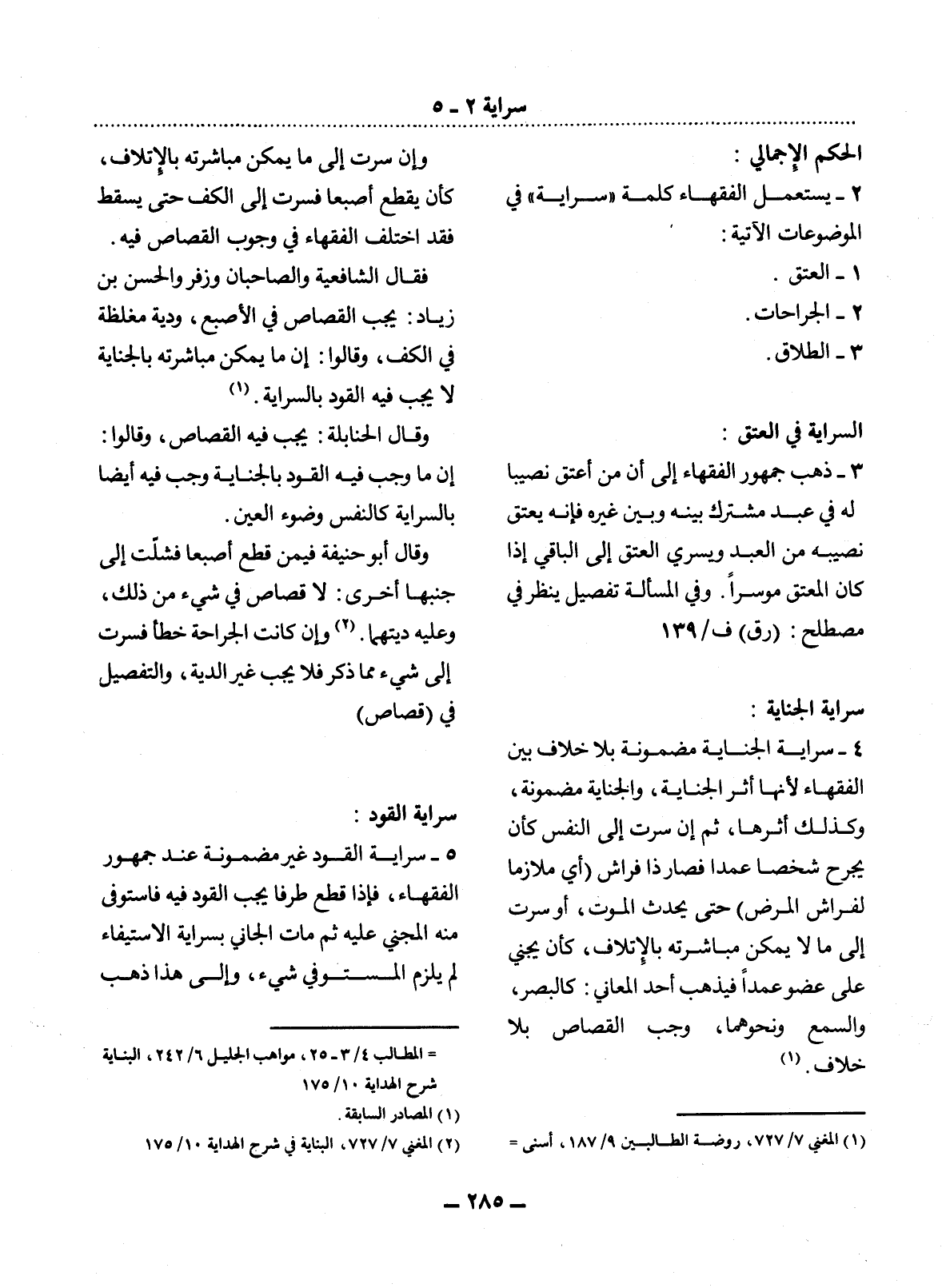 2 - يَسْتَعْمِل الْفُقَهَاءُ كَلِمَةَ " سِرَايَةٍ " فِي الْمَوْضُوعَاتِ الآْتِيَةِ: