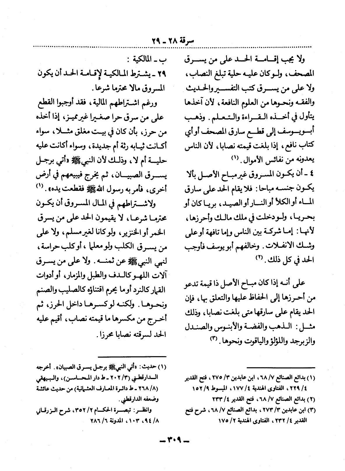 29 - يَشْتَرِطُ الْمَالِكِيَّةُ لإِِقَامَةِ الْحَدِّ أَنْ يَكُونَ الْمَسْرُوقُ مَالاً مُحْتَرَمًا شَرْعًا.