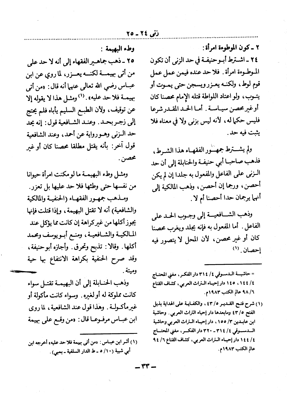 (1) أثر ابن عباس: " من أتى بهيمة فلا حد عليه " أخرجه ابن أبي شيبة (10 / 5 - ط الدار السلفية - بمبي) .