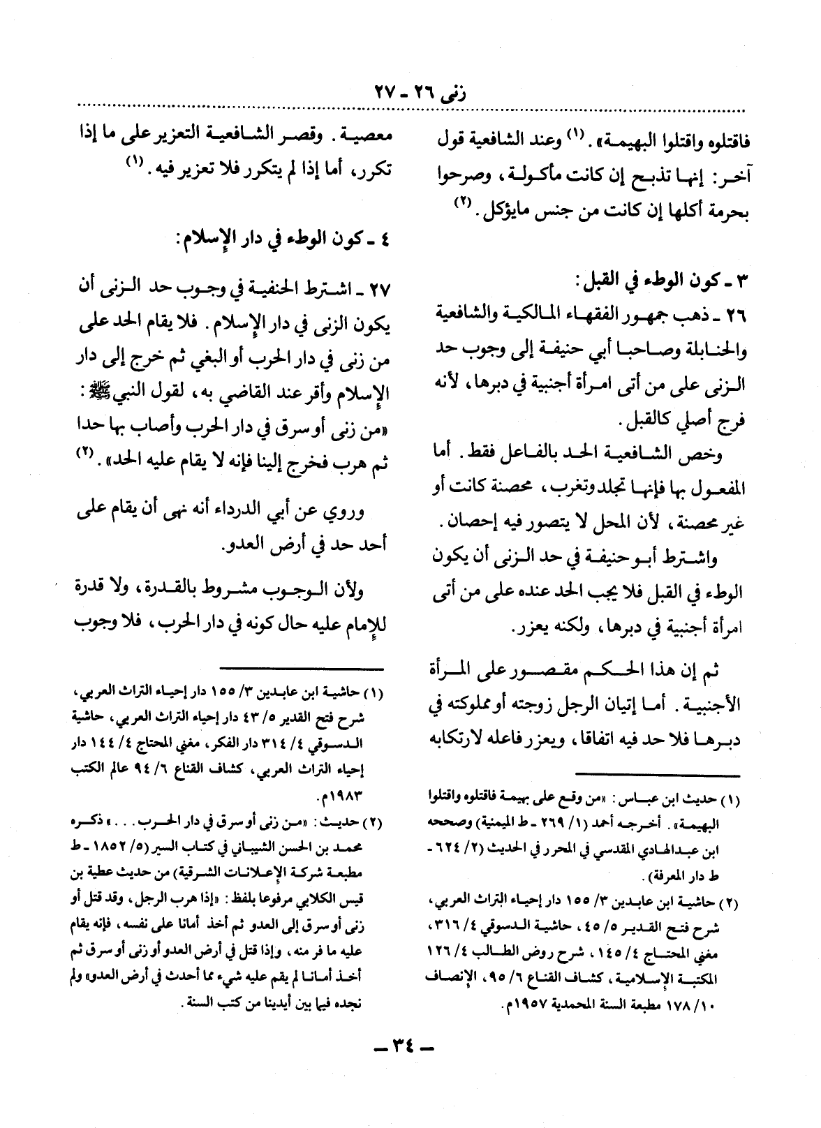 (2) حاشية ابن عابدين 3 / 155 دار إحياء التراث العربي، شرح فتح القدير 5 / 45، حاشية الدسوقي 4 / 316، مغني المحتاج 4 / 145، شرح روض الطالب 4 / 126 المكتبة الإسلامية، كشاف القناع 6 / 95، الإنصاف 10 / 178 مطبعة السنة المحمدية 1957 م.
