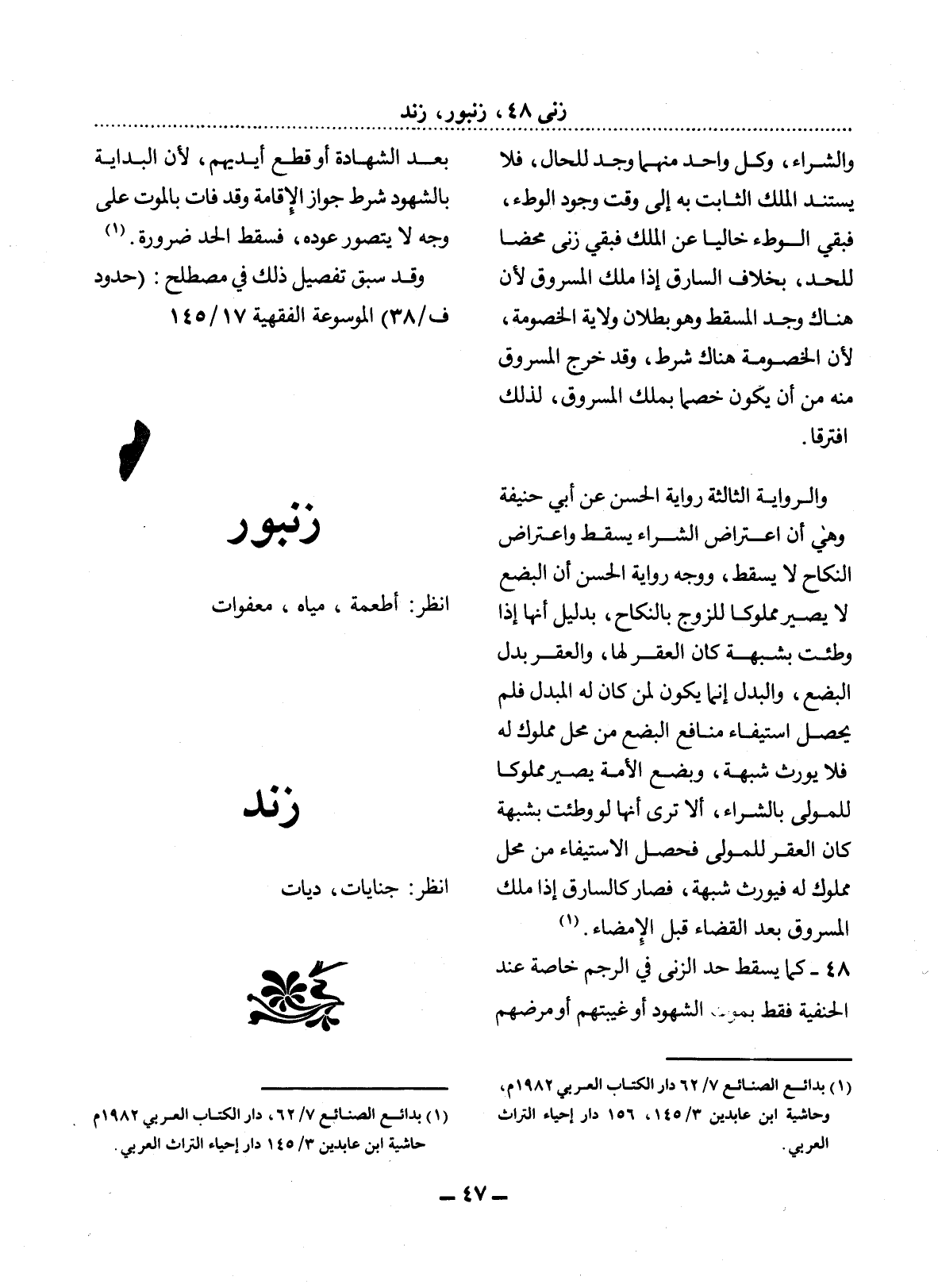 (1)) بدائع الصنائع 7 / 62 دار الكتاب العربي 1982 م، وحاشية ابن عابدين 3 / 145، 156 دار إحياء التراث العربي.