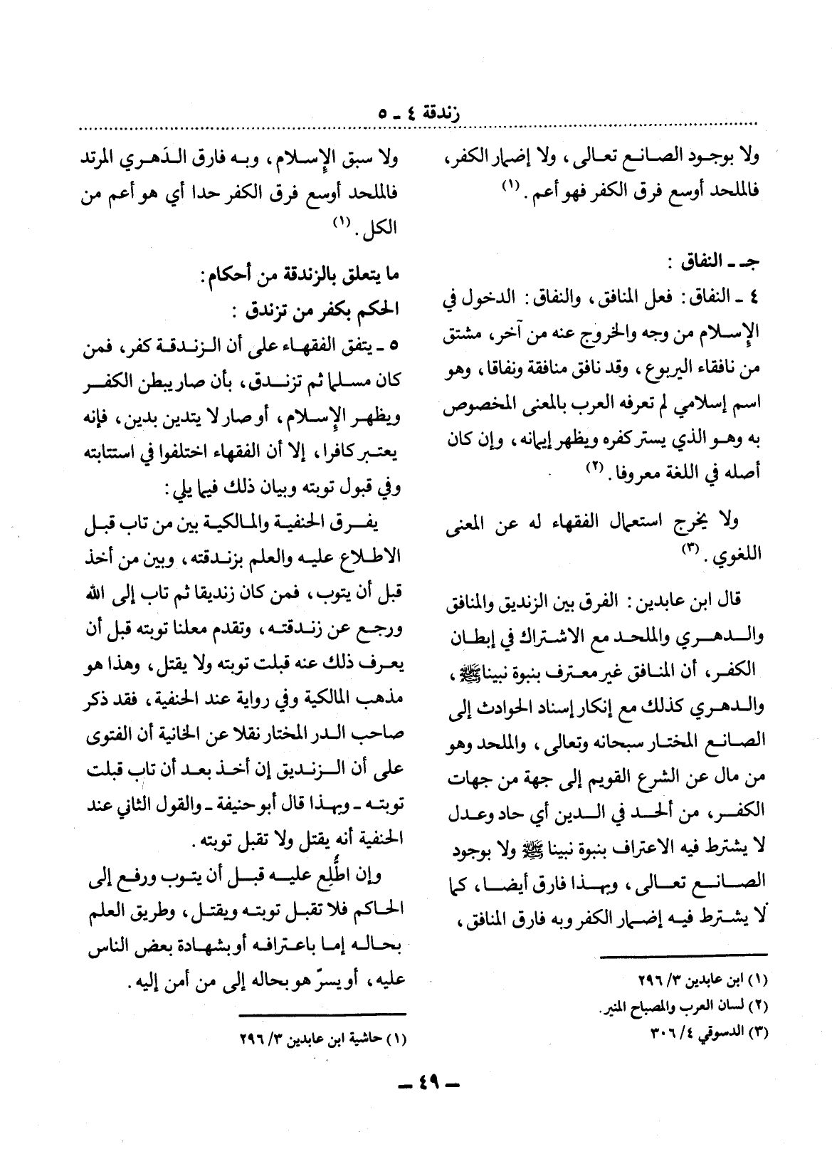 مَا يَتَعَلَّقُ بِالزَّنْدَقَةِ مِنْ أَحْكَامٍ: