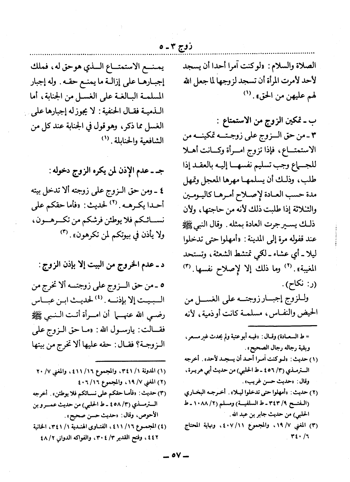 عَلَيْهِ الصَّلَاةُ وَالسَّلَامُ: لَوْ كُنْتُ آمِرًا أَحَدًا أَنْ يَسْجُدَ لأَِحَدٍ لأََمَرْتُ الْمَرْأَةَ أَنْ تَسْجُدَ لِزَوْجِهَا لِمَا جَعَل اللَّهُ لَهُمْ عَلَيْهِنَّ مِنَ الْحَقِّ (1) .