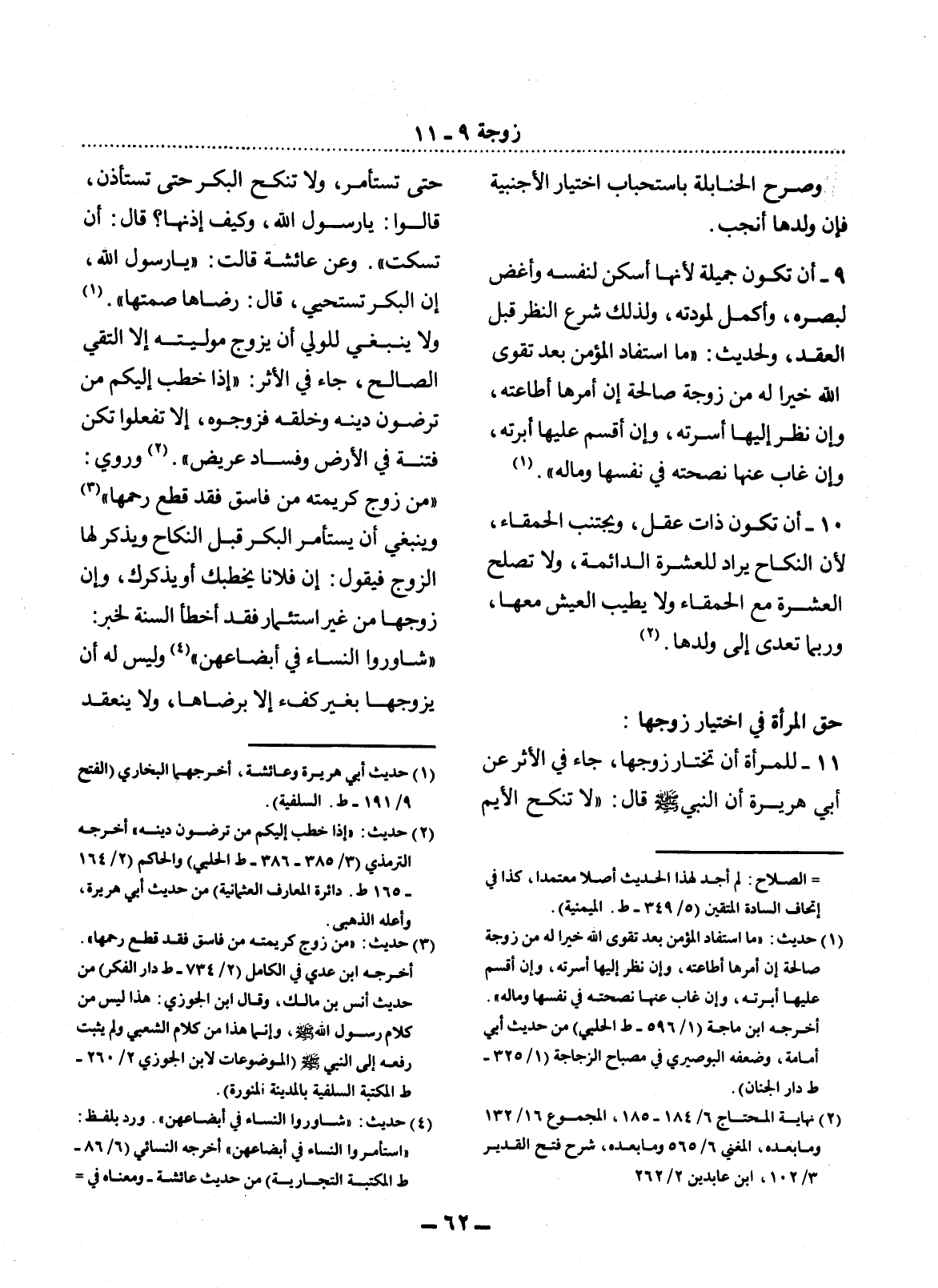 11 - لِلْمَرْأَةِ أَنْ تَخْتَارَ زَوْجَهَا، جَاءَ فِي الأَْثَرِ عَنْ أَبِي هُرَيْرَةَ أَنَّ النَّبِيَّ صَلَّى اللَّهُ عَلَيْهِ وَسَلَّمَ قَال: لاَ تُنْكَحُ الأَْيِّمُ