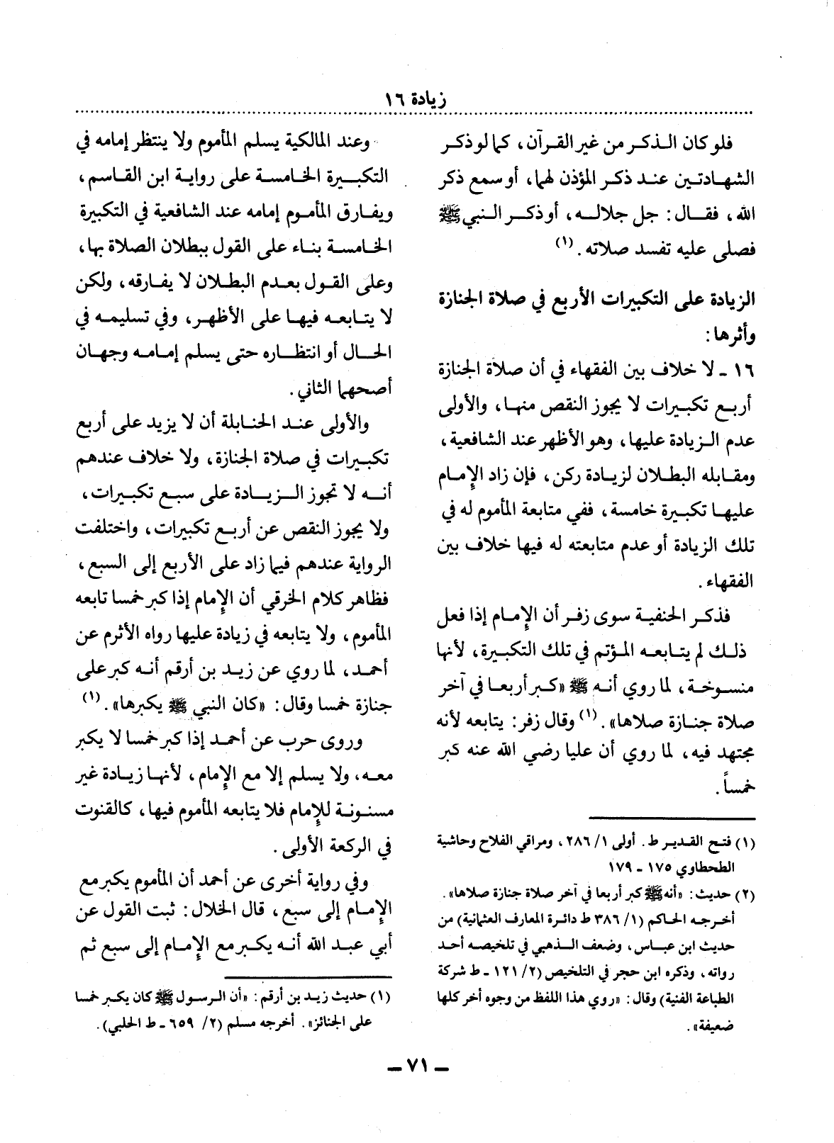 (1) حديث زيد بن أرقم: " أن الرسول صلى الله عليه وسلم كان يكبر خمسا على الجنائز ". أخرجه مسلم (2 / 659 - ط الحلبي) .