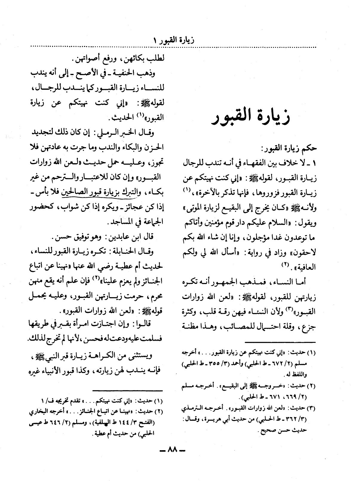 (1) حديث: " إني كنت نهيتكم عن زيارة القبور. . . " أخرجه مسلم (2 / 672 - ط الحلبي) وأحمد (3 / 355 - ط الحلبي) واللفظ له.