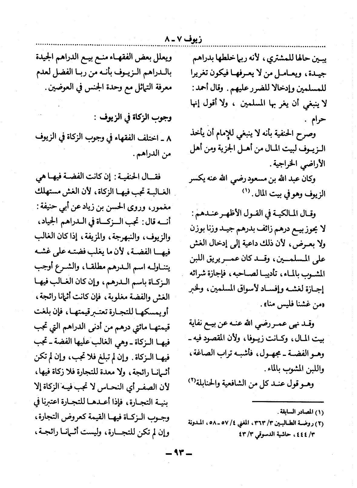 8 - اخْتَلَفَ الْفُقَهَاءُ فِي وُجُوبِ الزَّكَاةِ فِي الزُّيُوفِ مِنَ الدَّرَاهِمِ.
