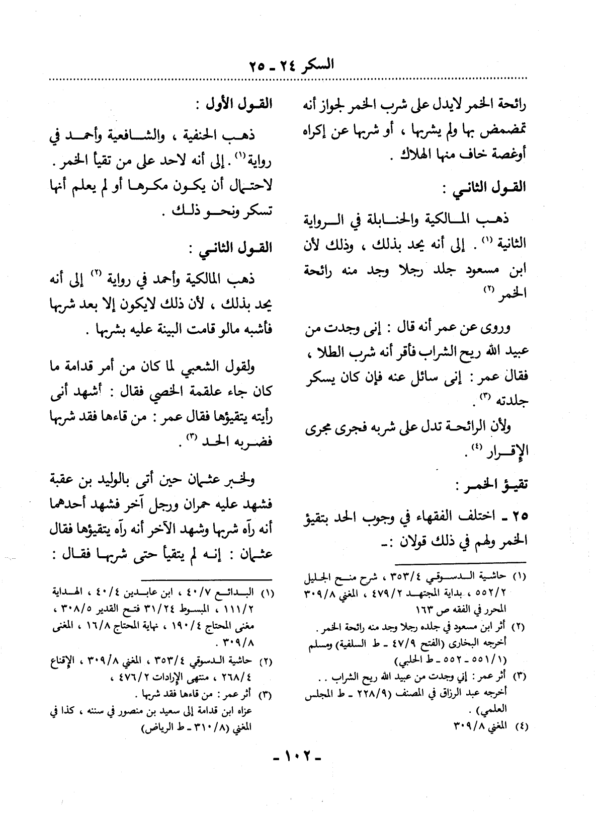 25 - اخْتَلَفَ الْفُقَهَاءُ فِي وُجُوبِ الْحَدِّ بِتَقَيُّؤِ الْخَمْرِ وَلَهُمْ فِي ذَلِكَ قَوْلاَنِ:
