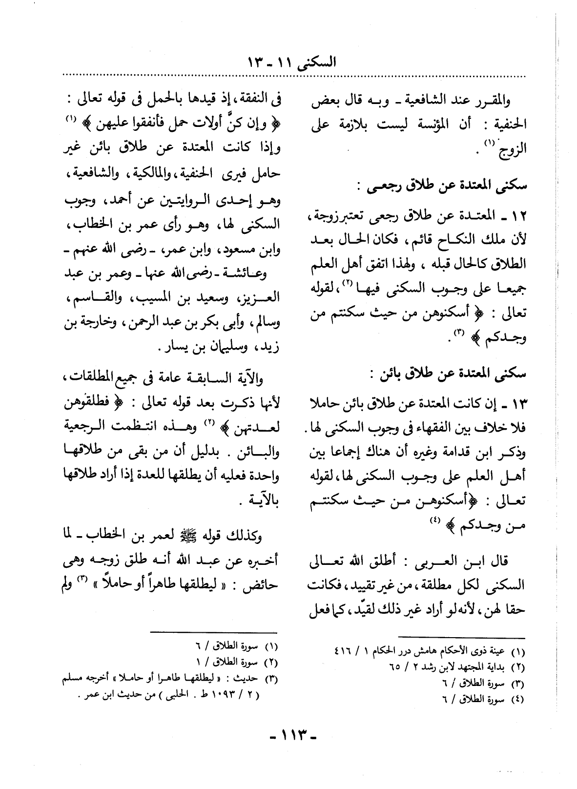 13 - إِنْ كَانَتِ الْمُعْتَدَّةُ عَنْ طَلاَقٍ بَائِنٍ حَامِلاً فَلاَ خِلاَفَ بَيْنَ الْفُقَهَاءِ فِي وُجُوبِ السُّكْنَى لَهَا. وَذَكَرَ ابْنُ قُدَامَةَ وَغَيْرُهُ أَنَّ هُنَاكَ إِجْمَاعًا بَيْنَ أَهْل الْعِلْمِ عَلَى وُجُوبِ السُّكْنَى لَهَا، لِقَوْلِهِ تَعَالَى: {أَسْكِنُوهُنَّ مِنْ حَيْثُ سَكَنْتُمْ مِنْ وُجْدِكُمْ} (4)