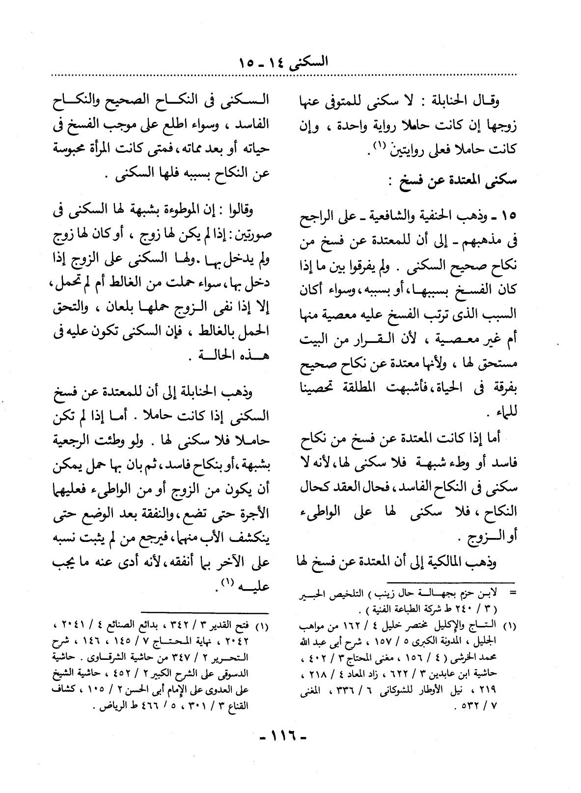 السُّكْنَى فِي النِّكَاحِ الصَّحِيحِ وَالنِّكَاحِ الْفَاسِدِ، وَسَوَاءٌ اطَّلَعَ عَلَى مُوجِبِ الْفَسْخِ فِي حَيَاتِهِ أَوْ بَعْدَ مَمَاتِهِ، فَمَتَى كَانَتِ الْمَرْأَةُ مَحْبُوسَةً عَنِ النِّكَاحِ بِسَبَبِهِ فَلَهَا السُّكْنَى.